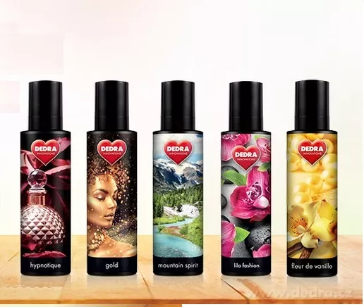 Osvěžovače vzduchu a textilu 2v1 promění každou domácnost v oázu příjemných vůní. Jejich speciální složení nejen provoní interiér, ale zároveň osvěží a oživí i textilie – závěsy, polštáře, povlečení, ale i oblečení nebo čalounění.