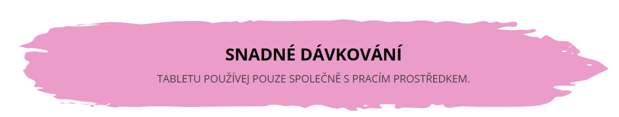 - Jednoduché použití: tabletu stačí vložit do dávkovače prášku nebo přímo do bubnu pračky pod prádlo. Toto jednoduché použití zaručuje, že nebudou vyžadovány žádné další kroky ani speciální nastavení pračky.